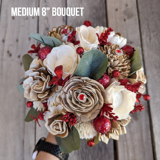 Pre-made Artificial Wood Flower Bouquet, Red Brooch Wooden Flower Bridal Bouquet, Artificial Wedding Bouquet, Bridesmaid Bouquets