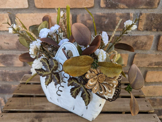 Wood Flowers Floral Arrangement for Fall, Thanksgiving Table Centerpiece, Cream Pumpkin Floral Arrangement, Fall Home Decor