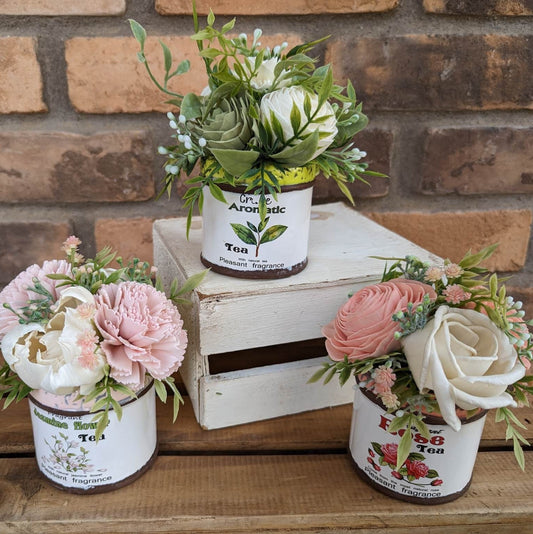 Pre-made Cement Planter Table Centerpiece with Wood Flowers, Wood Flower Centerpiece Decor, Small Flower Arrangement for Housewarming Gift