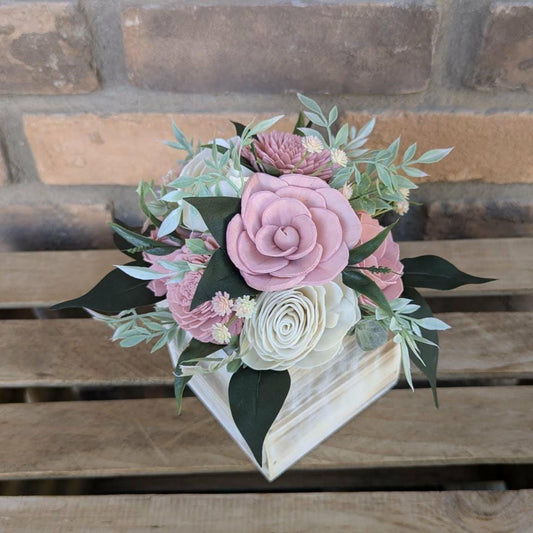 Pink and Cream Wood Flower Floral Arrangement, Table Centerpiece, Flower Box, Get Well, Flower Arrangement, Shelf Decor Mother's Day
