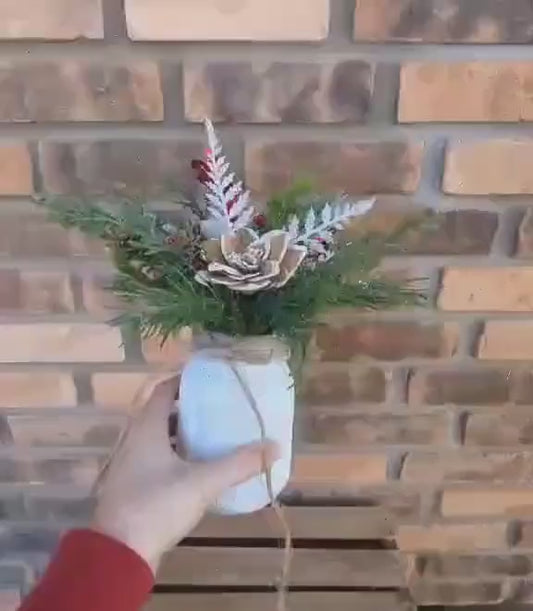 Pre-made Christmas Wood Flower Arrangement, Christmas Table Centerpiece, Wood Flowers in Vase, Holiday Hostess Gift, Winter Florals