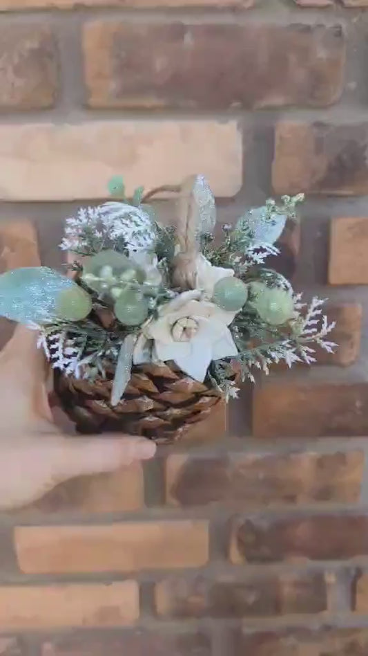 Pine Cone Christmas Ornament with Wood Flowers, Christmas Tree Ornament, Pine Cone Decor, Christmas Tree Decor