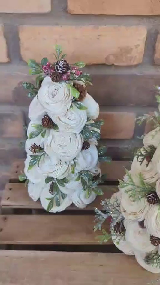 Wood Flower Christmas Tree with Pine Cones, Classic Christmas Decor, Winter Centerpiece, Christmas Table Centerpiece, Host Gift