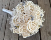 Wood Flower Bridal Bouquet, Rustic Wedding Bouq...